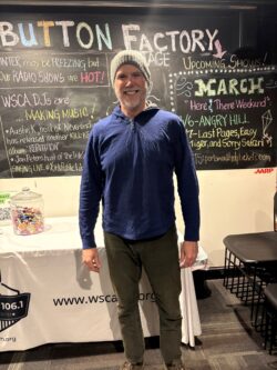 I’d say for me, it all starts with the music. I just moved to Kittery last July, but I have lived in Portsmouth since ‘94. So just the music first and foremost is what grabbed me. A smaller station because I’ve always gravitated more towards the college stations, not the big commercial stations. So the music grabbed me first and foremost. And then I’d say once I got involved, then it was absolutely the sense of community and the Button Factory Stage. Because I think my first time I ever was aware of the station was somehow with friends winding up in here for some live music. I was like, “What is this? What is this little place?”